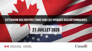 Les restrictions sur les voyages discrétionnaires (non essentiels) entre le Canada et les États-Unis ont été prolongées jusqu’au 21 juillet 2020.